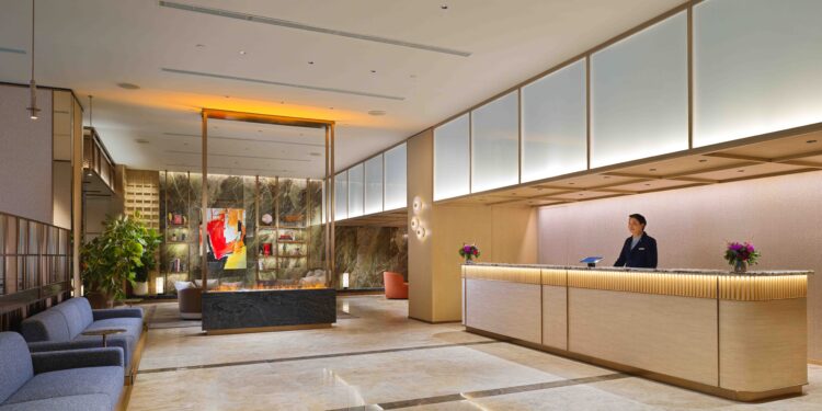 本次翻新工程由LAUD设计工作室操刀,灵感源自香港岛南区的自然景观,展现雅致而稳重的设计美学。全新酒店大堂融合高雅与温馨氛围,天然木材、石材细节及柔和灯光营造精致格调,开放式设计贯通接待区、休憩区及共享空间。精心规划的座位布局为家庭、商务旅客及团队提供舒适体验,使大堂既是迎宾场所,也是社交枢纽。